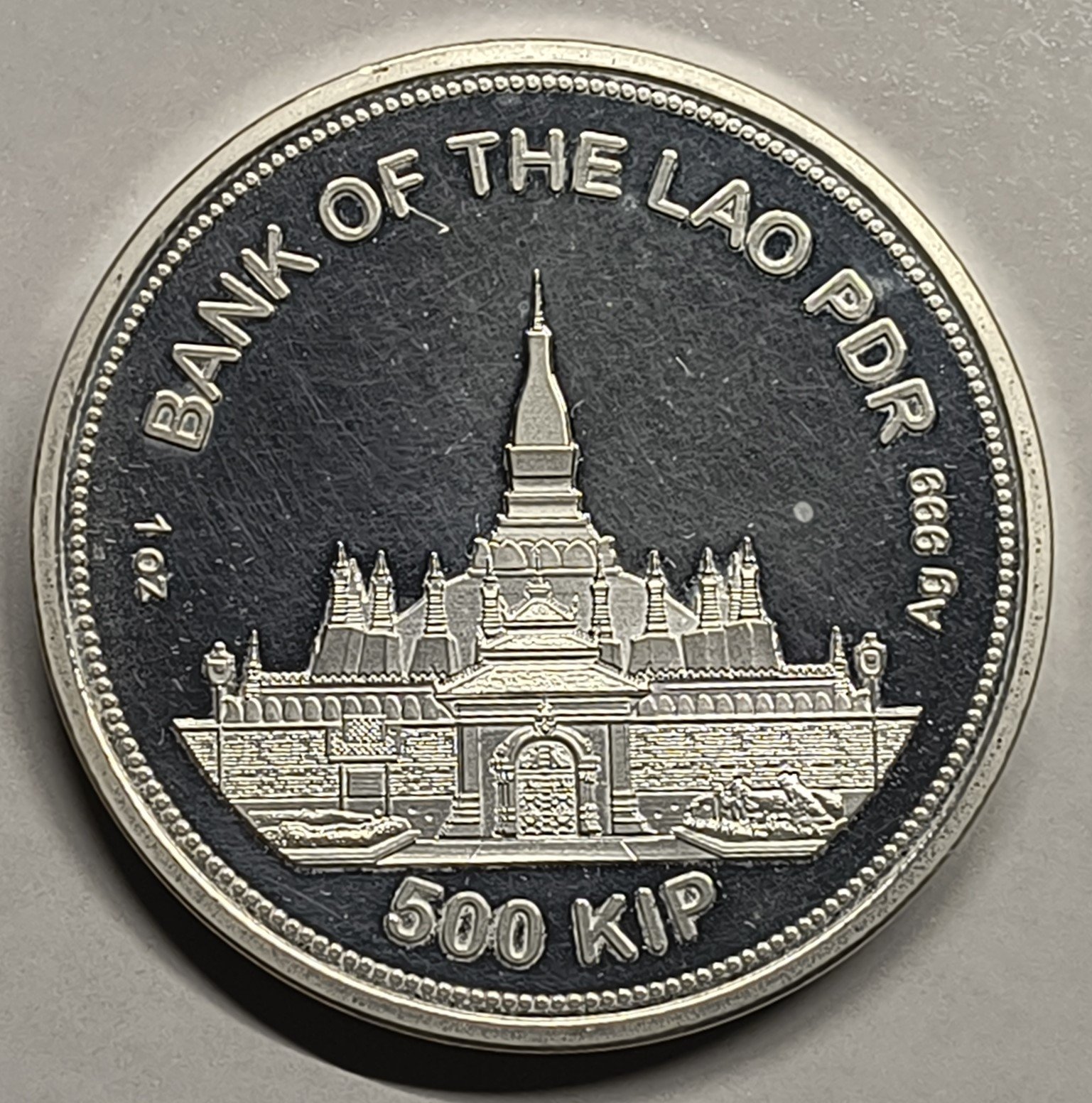 | Leyendas | “BANK OF THE LAO PDR”, “1 oz Ag 999”, “500 Kip” |