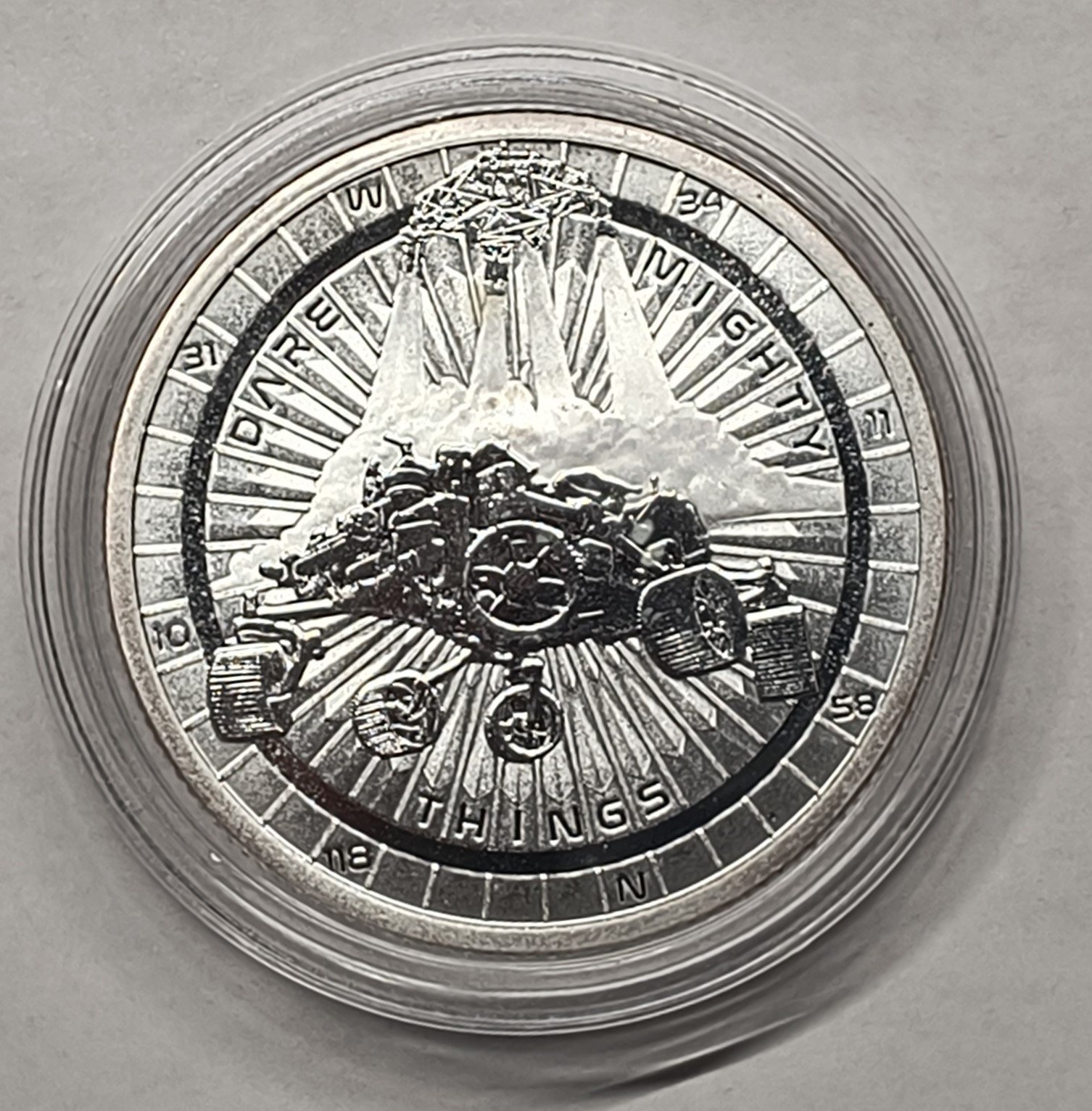 Diseño y Temática Espacial: El reverso de la moneda presenta una imagen detallada del rover Perseverance en la superficie de Marte, junto con el planeta y posiblemente el helicóptero Ingenuity. Es un homenaje a la ingeniería humana y a la exploración de nuevos mundos. El anverso lleva el escudo de armas de Fiyi y la información de acuñación: «FIJI 2021» y la pureza «1 oz 999 FINE SILVER». Esta moneda atrae a coleccionistas de ciencia, tecnología y numismática moderna.
