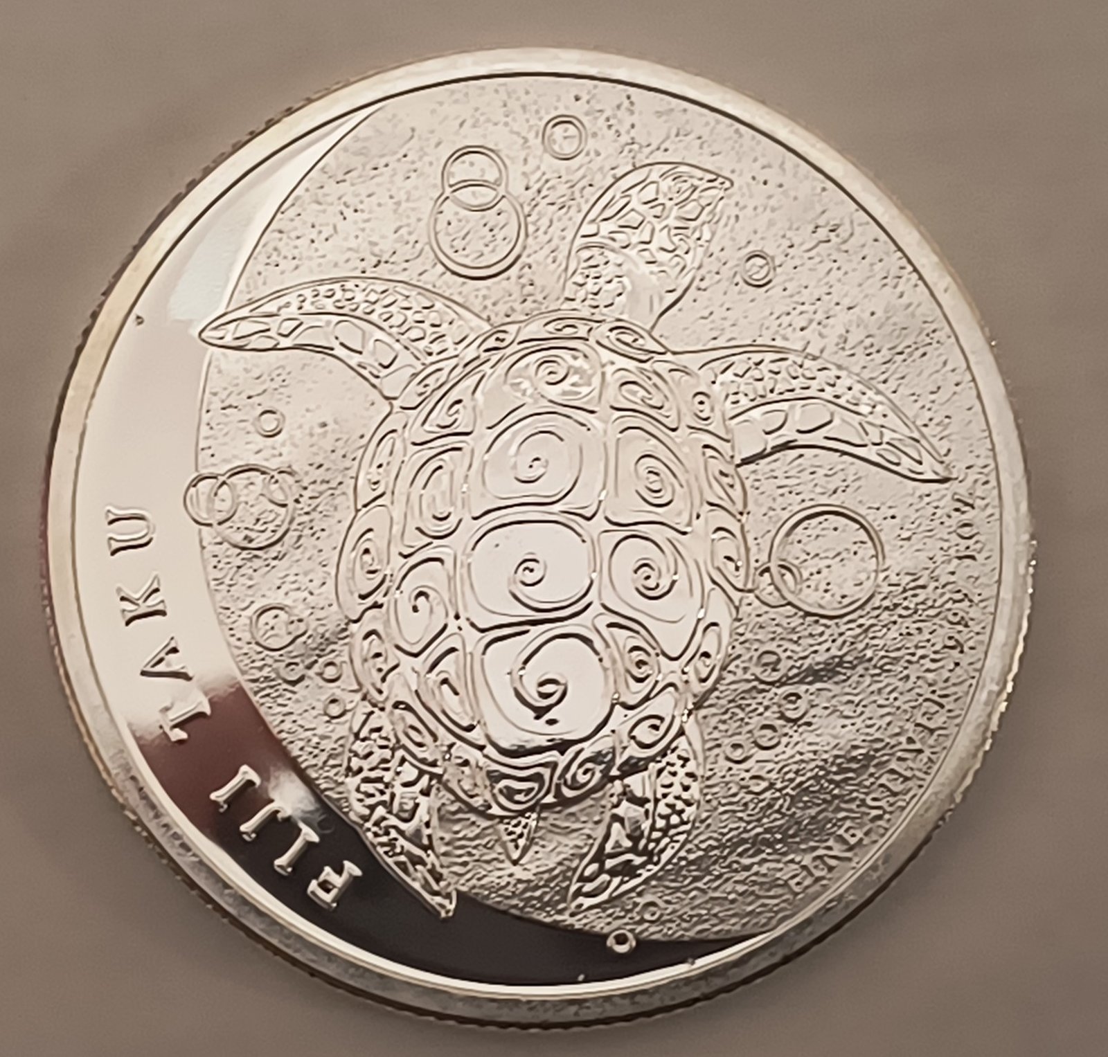 La moneda Tortuga Carey 2012 (conocida a veces como «Taku») es parte de una popular serie de monedas bullion emitida originalmente para Fiyi y luego para Niue/Tuvalu. El diseño de 2012 presenta una detallada imagen de la tortuga marina nadando en las aguas del Pacífico, un símbolo de longevidad y sabiduría.