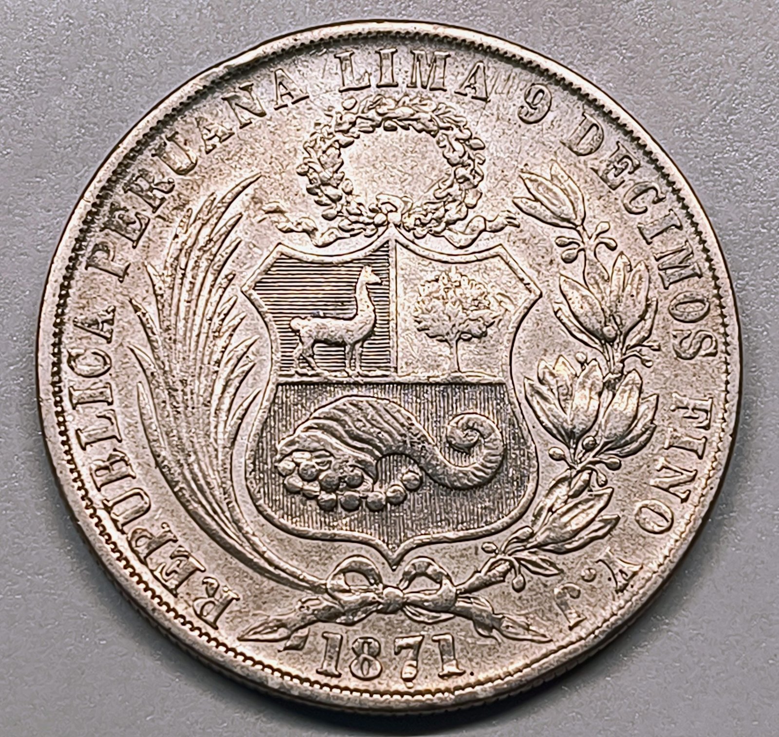 El Un Sol de 1871 es una de las monedas más apreciadas por los coleccionistas de plata mundial. El anverso presenta la icónica alegoría de la Libertad Sentada, sosteniendo un escudo y una columna coronada por un gorro frigio, símbolo de la independencia republicana. El reverso luce el Escudo Nacional del Perú, rodeado por una corona de palma y laurel, representando la riqueza natural del país.