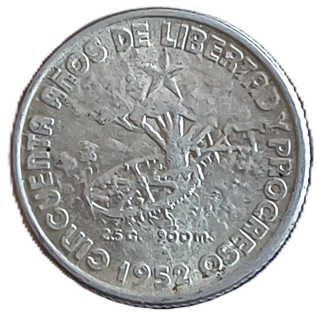 La 10 Centavos 50 Aniversario XF/AU es una moneda histórica en plata de ley .900, en estado de conservación XF. Una pieza con gran valor numismático e histórico para coleccionistas especializados.