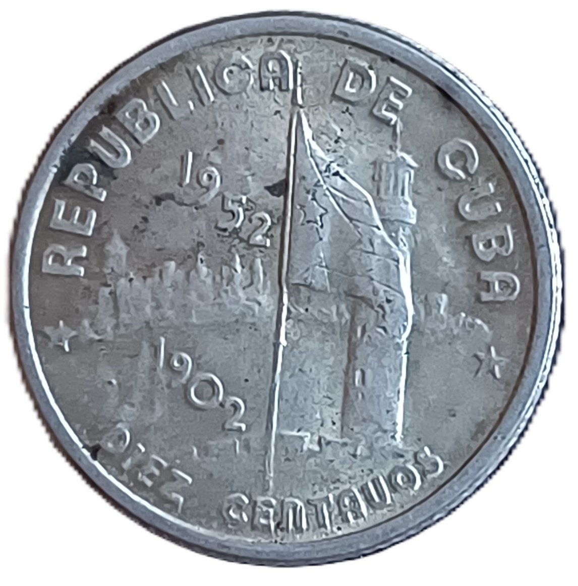10 Centavos de 50 Aniversario, plata 0,900, peso de 2,52g, en estado XF/AU (45 Sheldon).