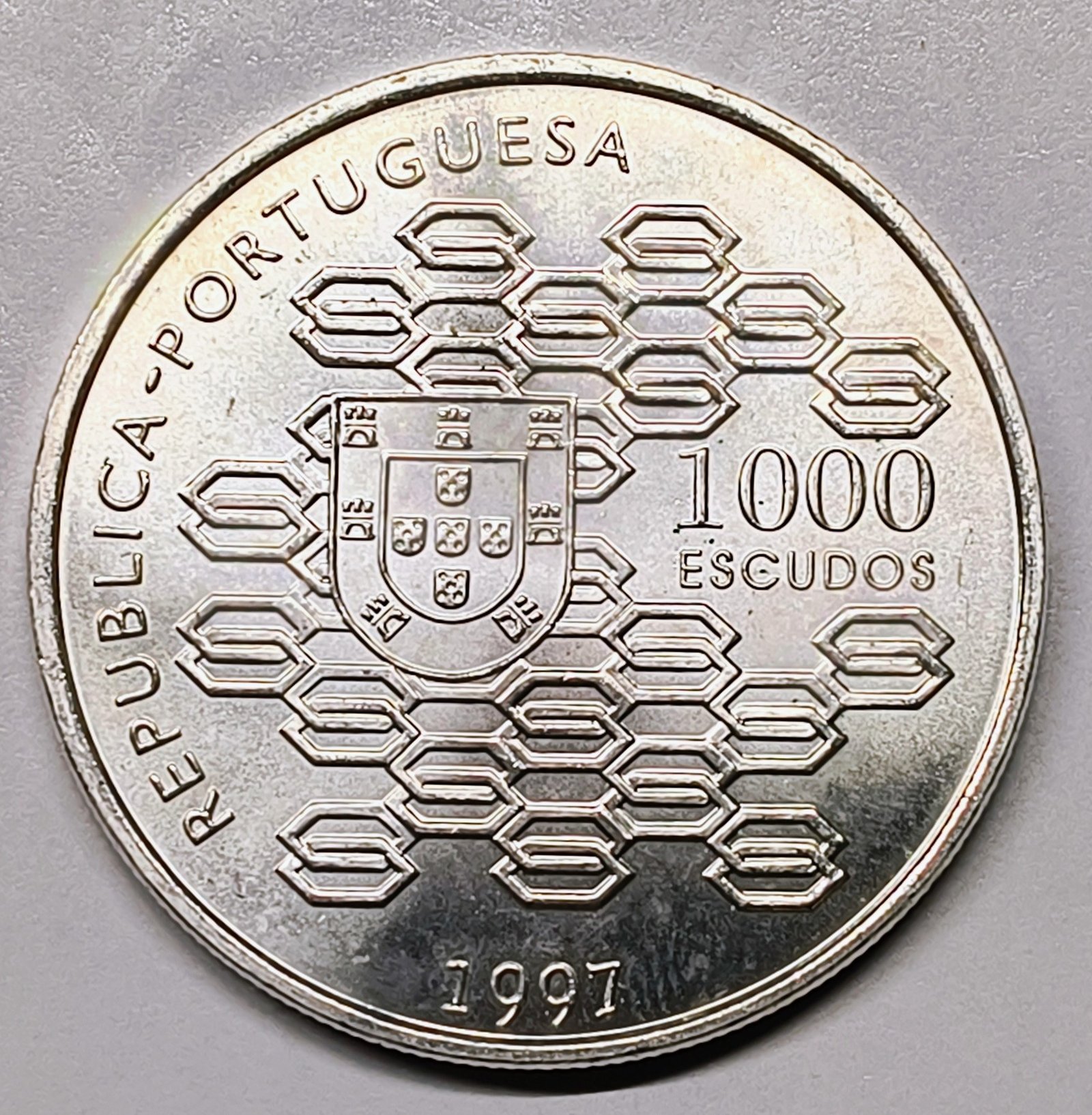 Moneda de 1000 Escudos de Portugal, año 1997. Acuñada en plata 0,500 con un peso de 27 g. Conmemorativa del Bicentenario del Crédito Público. Gran formato de 40 mm. Estado EBC+/SC. Una pieza de gran presencia y valor histórico para cualquier colección.