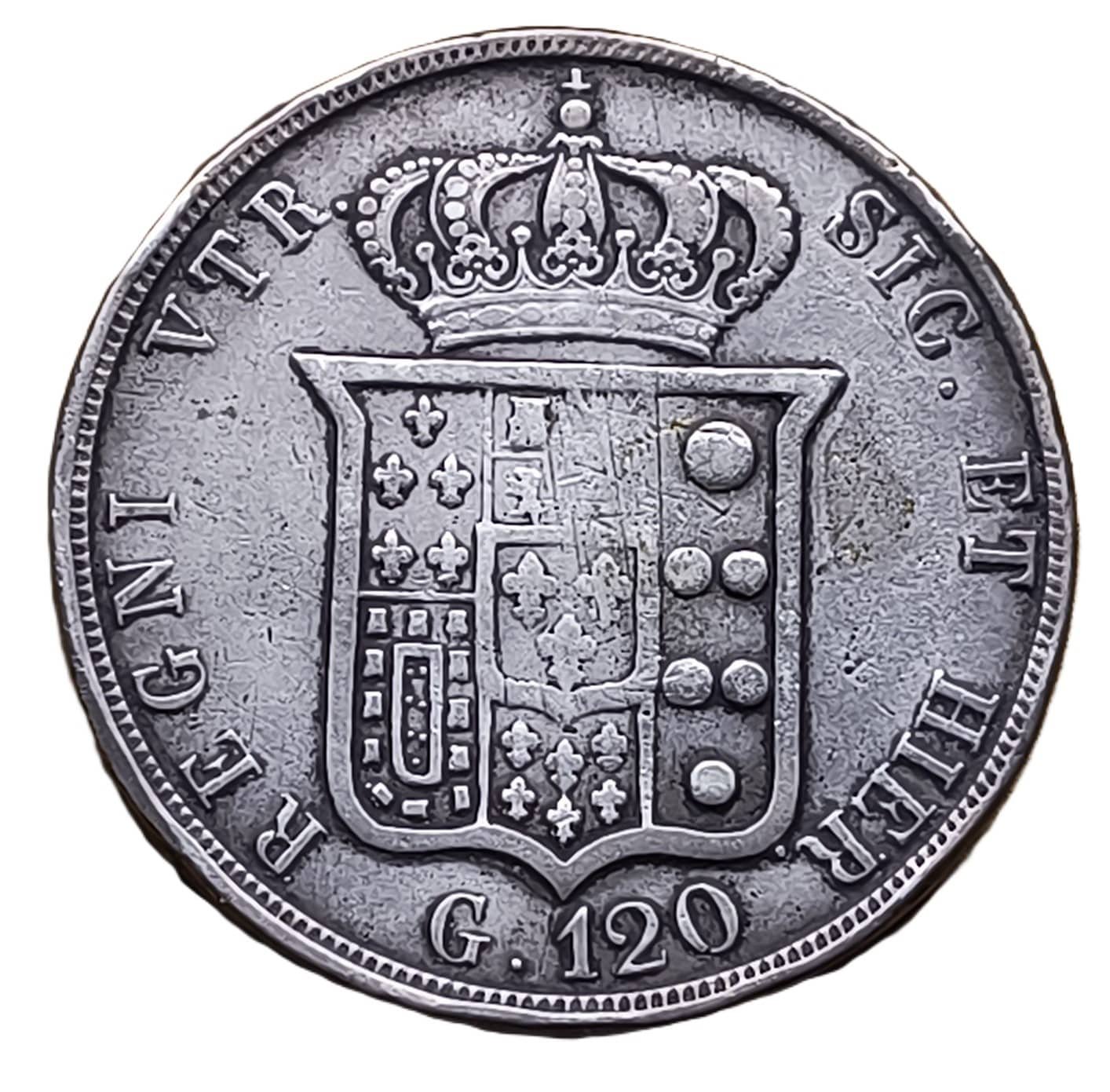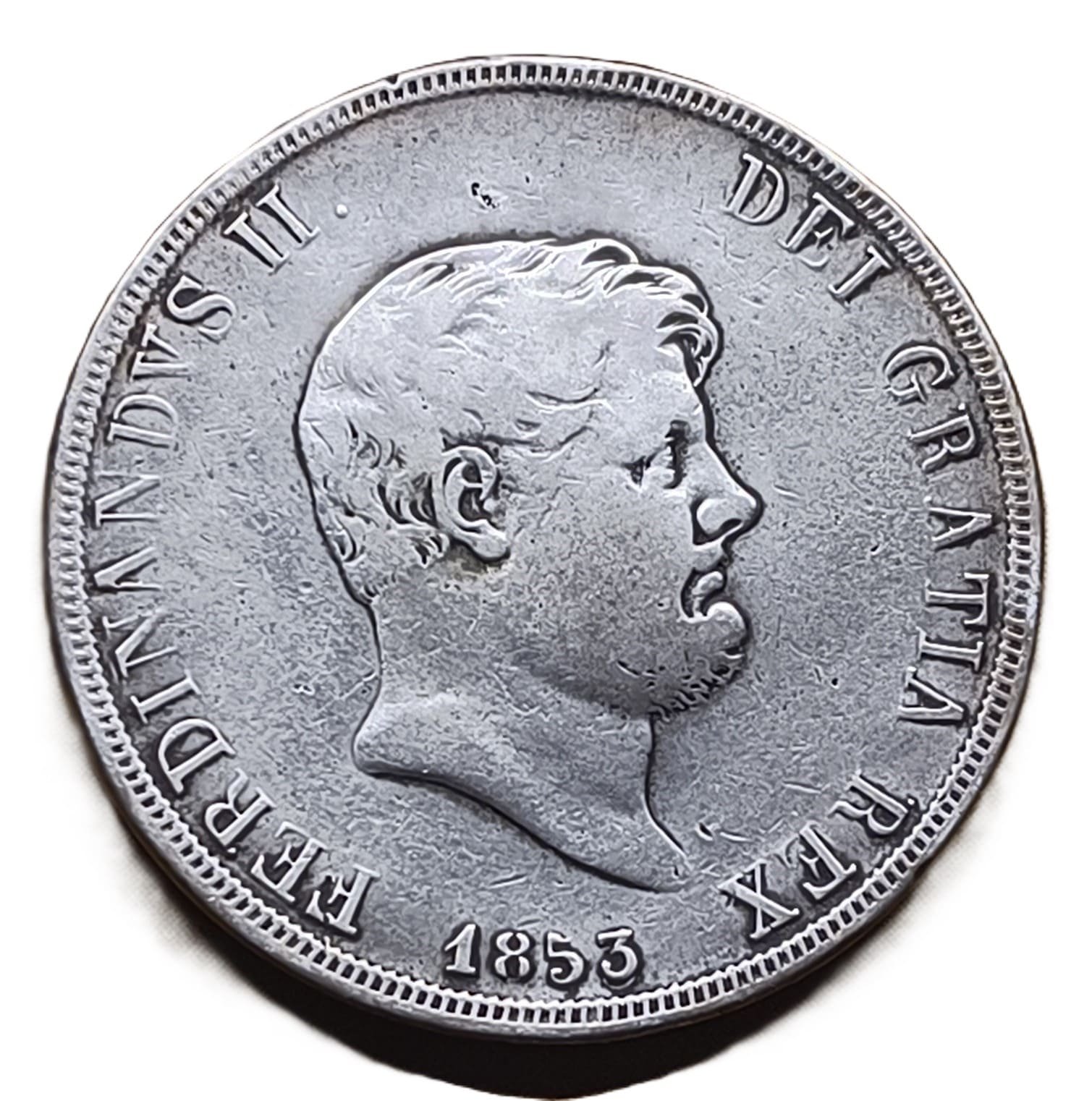 120 Grana de Italia, 1853 (Ferdinando II), plata 0,833, peso de 27,32g, en estado VF (30 Sheldon).