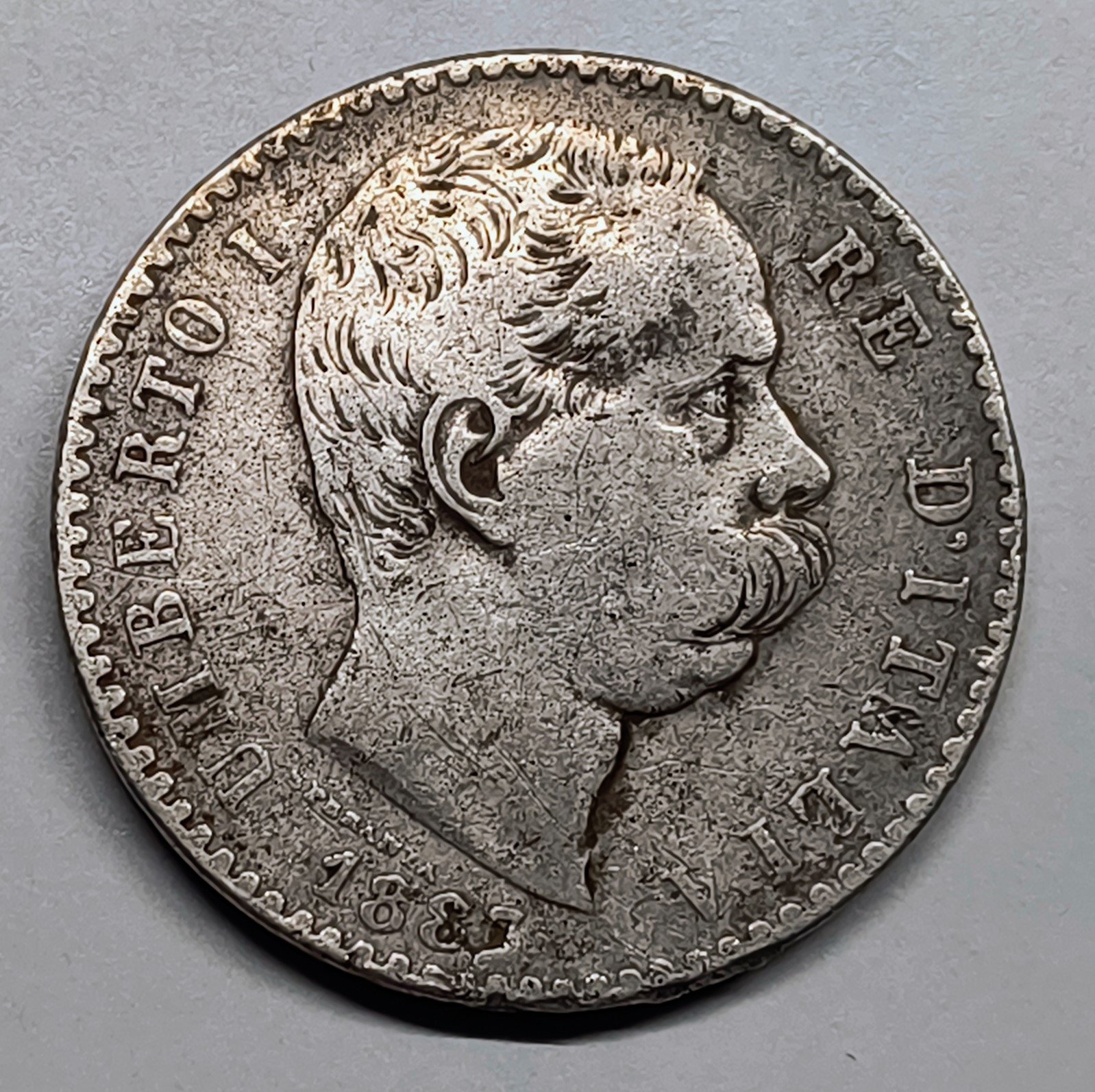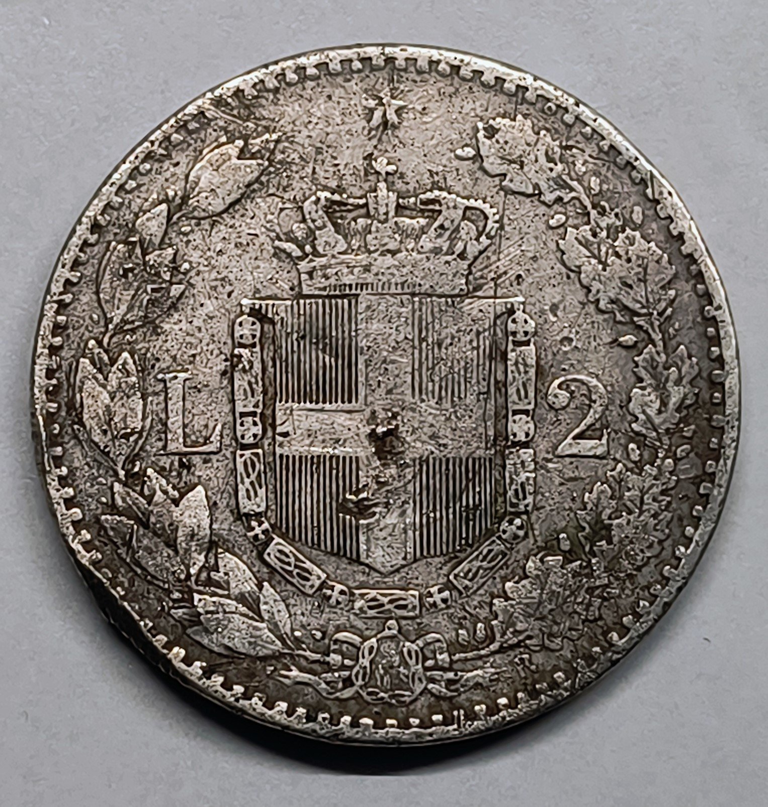 Acuñada en plata de 835 milésimas, esta moneda de 27 mm era una unidad fundamental en la economía de finales del siglo XIX. Este ejemplar en estado BC+ muestra el desgaste noble de la historia, manteniendo las leyendas totalmente legibles y la estructura central del escudo de armas nítida. Con un peso de 9,77 g, es una pieza ideal para coleccionistas de numismática europea decimonónica o de la historia de la unificación italiana.