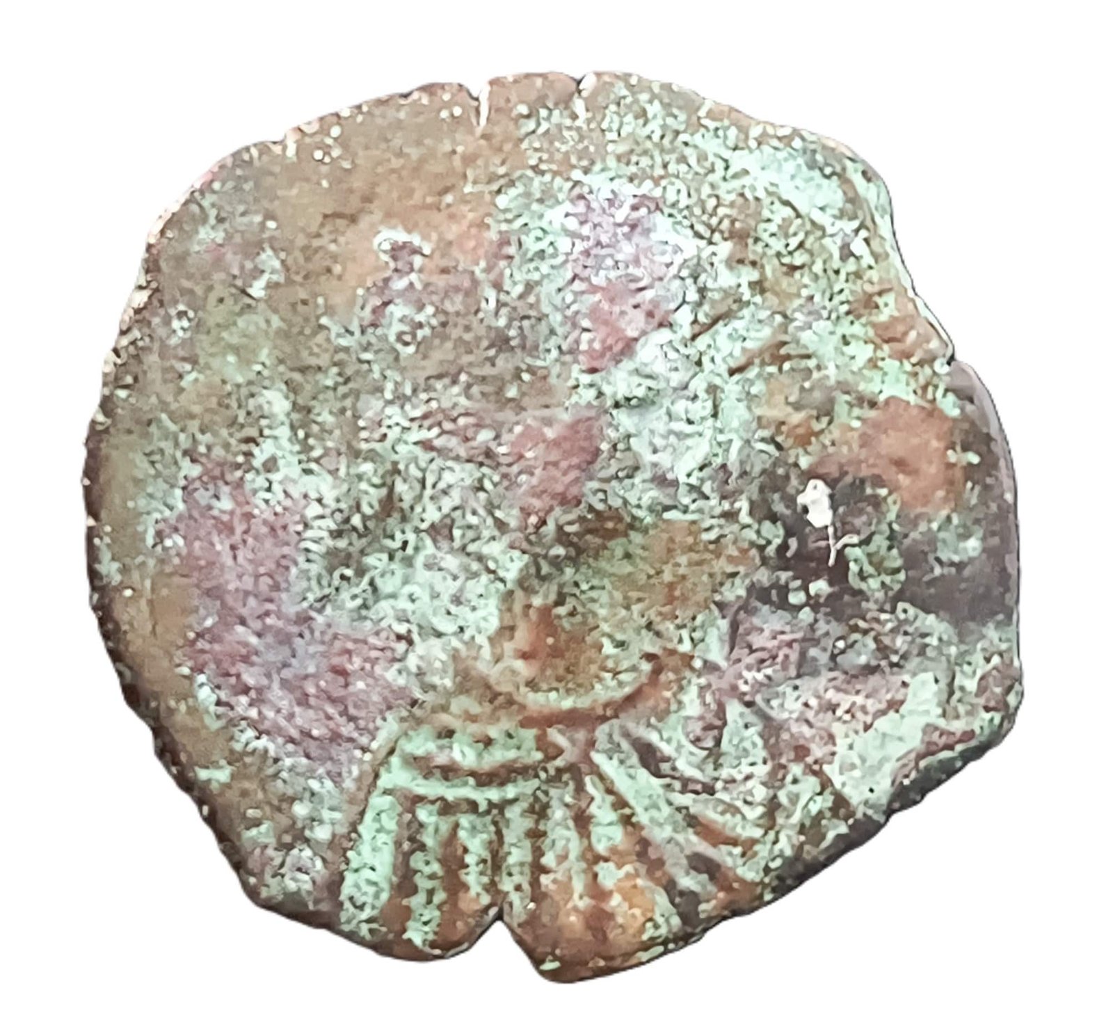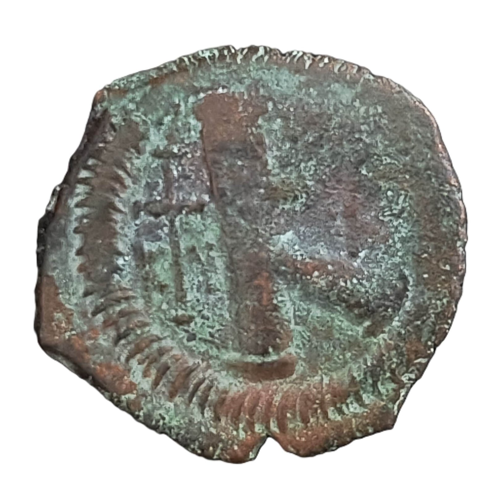Pequeña moneda bizantina de 20 Nummi justin I , posiblemente de mediados del siglo VI. Pieza de bronce bien conservada, con pátina homogénea. Interesante ejemplar del bajo numerario del periodo bizantino.