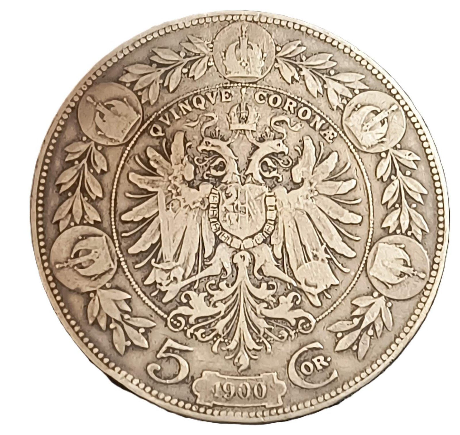 5 Coronas de Austria-Hungría, 1900, plata 0,900, peso de 23,71g, en estado VF (30 Sheldon).