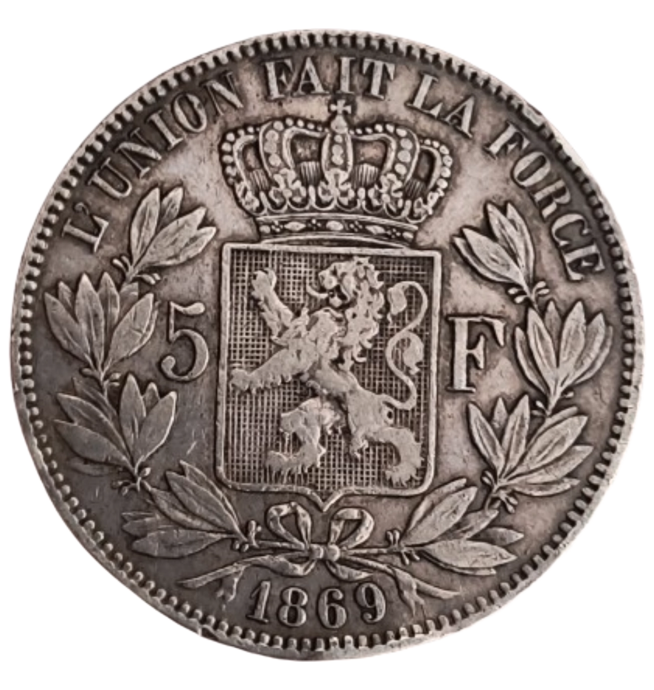 La 5 Francos Leopoldo II 1868 MBC- es una moneda histórica en plata de ley .900, acuñada en 1868, en estado de conservación MBC. Una pieza con gran valor numismático e histórico para coleccionistas especializados.