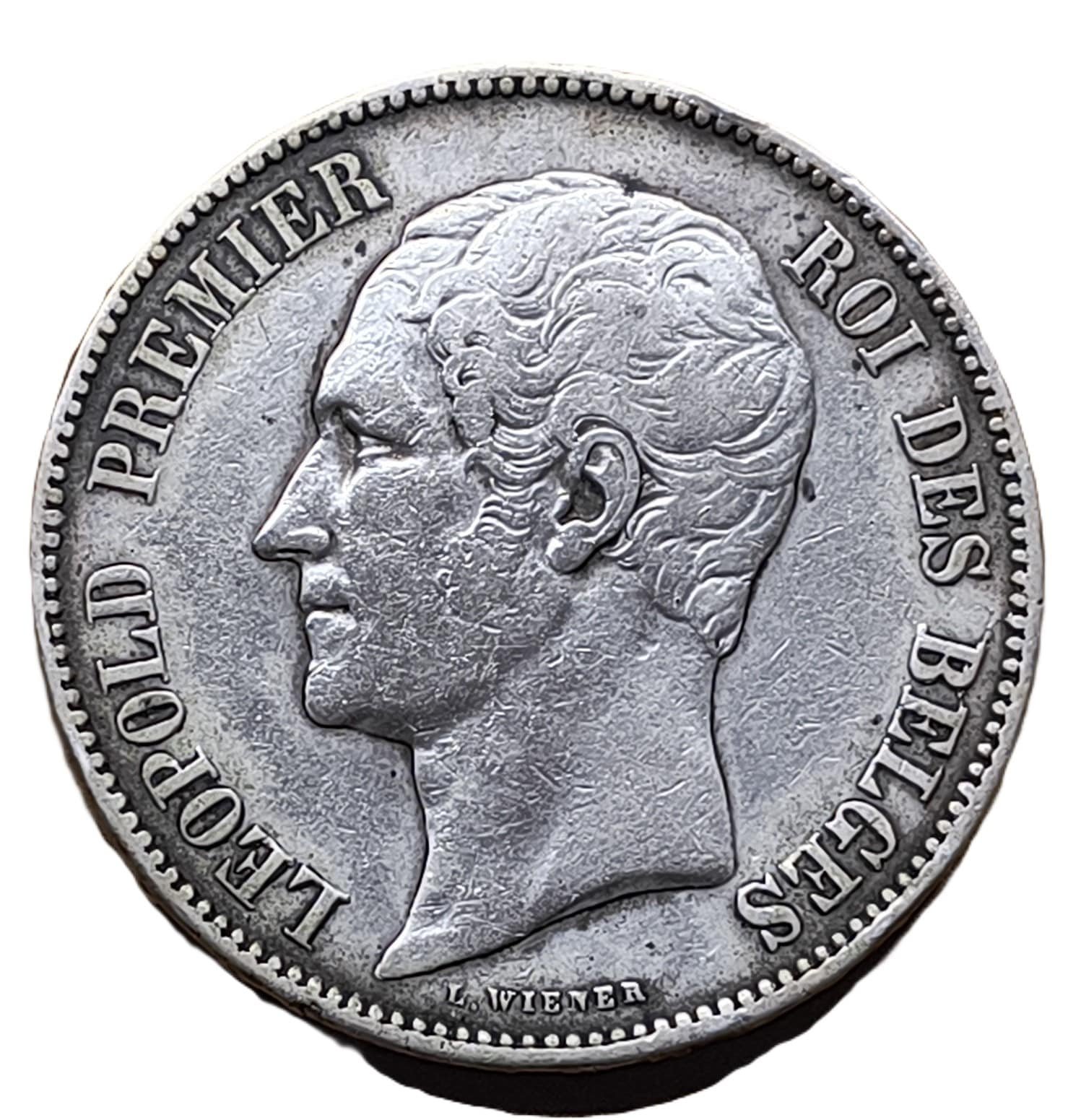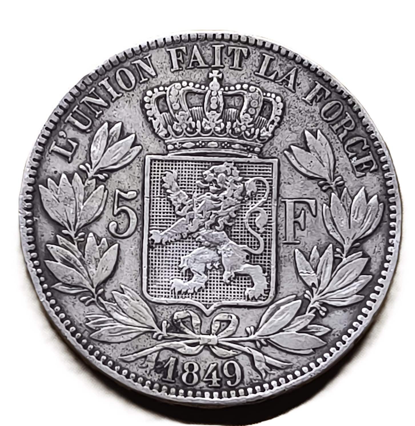 5 Francs de Bélgica, 1849, plata 0,900, peso de 24,79g, en estado XF (40 Sheldon).