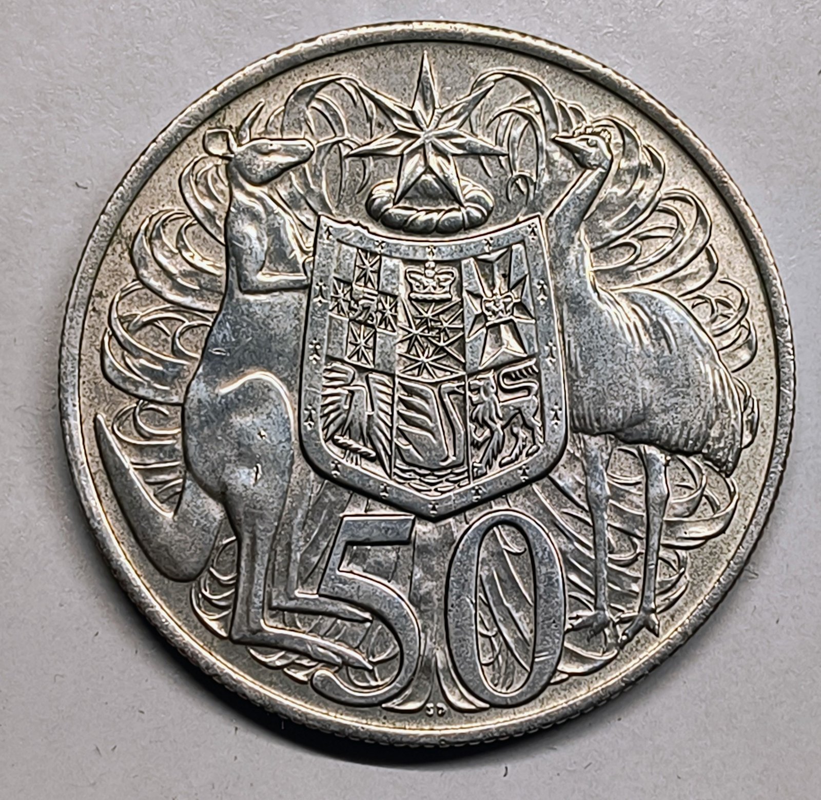 La moneda de 50 Centavos de 1966 es una leyenda de la numismática moderna. Emitida solo durante el primer año del sistema decimal en Australia, su alto contenido en plata hizo que el valor del metal superara rápidamente al facial, lo que llevó al gobierno a retirarla de la circulación y cambiar su forma y composición. El anverso muestra el retrato de la Reina Isabel II diseñado por Arnold Machin, mientras que el reverso luce el Escudo de Armas de Australia con el canguro y el emú sosteniendo el blasón.